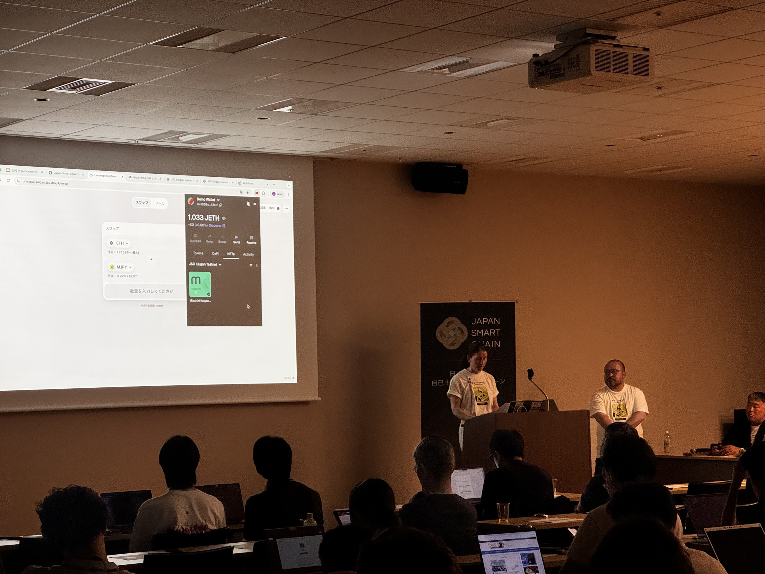 The program then moved into an overview and live demo of the “Kaigan” testnet. Jeff Wentworth, Chief Architect at AltX Research K.K. and Co-founder of Curvegrid Inc., explained how JSC is fully compatible with Ethereum yet permissioned, maintaining Japan’s sovereignty to ensure robust governance. He outlined its design for long-term operation at both national and enterprise scales, highlighting its scalability and real-time capabilities enabled by low gas fees and high-speed processing. Jeff then conducted a live walkthrough of the testnet, showing participants how to access it and navigate its interface.